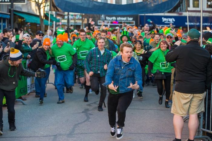 We get decked out in green gear and run 32.8 feet down Pearl St. into Brother’s Bar for green beers & shenanigans!