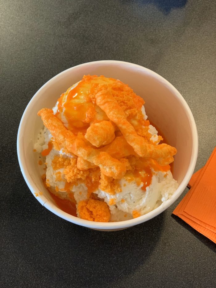 In a previous life I was known as a connoisseur of weird foods, specifically on Wednesdays. This right here takes the cake for the weirdest food I’ve found this week. Who would in their right mind order this? Seriously there is no way any non-stoned person is going to eat this. Would you? I would try it if, and only if, they paired it with a chicken tender and made it like a chicken and waffles type of thing. Not to brag but I could make this actually be tasty.