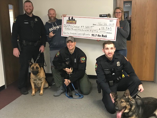 Between the online auctions, the raffle for the dirt bike(Congrats to Amy from Trempealeau!), the “Donuts for Donations”, and all the amazing Rock listeners who donated…..we were able to raise over $15,000 for the City of La Crosse’s K9 Unit to purchase & train a new K9 Officer.