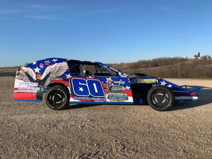 This week, fellow competitor and friend Colby Mann revealed his new modified paint scheme for the upcoming season. It is a very beautiful tribute to Knutson on the back quarter panel of his car. It shows Casey in victory lane with his arms outstretched and angels wings behind him and a caption reading “The road to VICTORY requires the heart of a champion”.