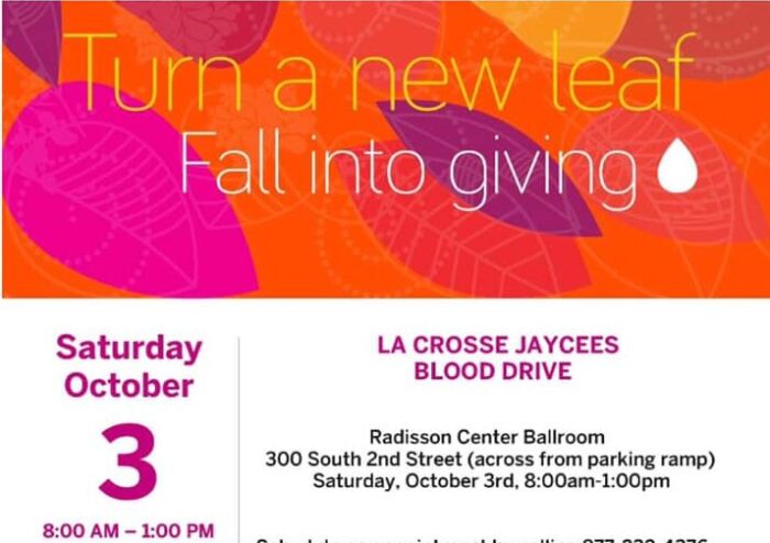 This event benefits the La Crosse Jaycees, and you can enjoy some amazing fair food courtesy of Stumpy’s Concessions, and you can also donate blood!