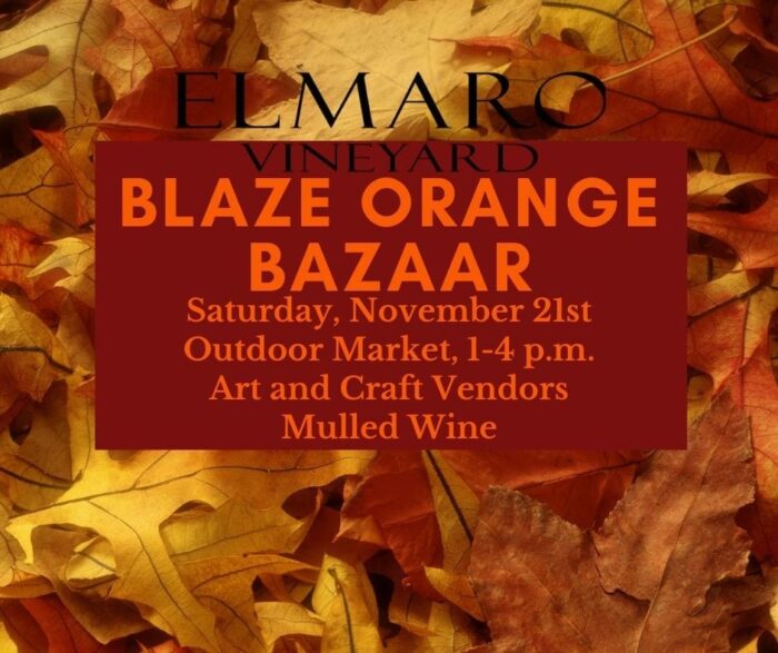 On Saturday, there’s plenty to do, including the winter Farmer’s market, the La Crosse Jaycees annual “Toys for Tots” toy drive from 8am until 4pm, and the Blaze Orange Bazaar at Elmaro Vineyard!