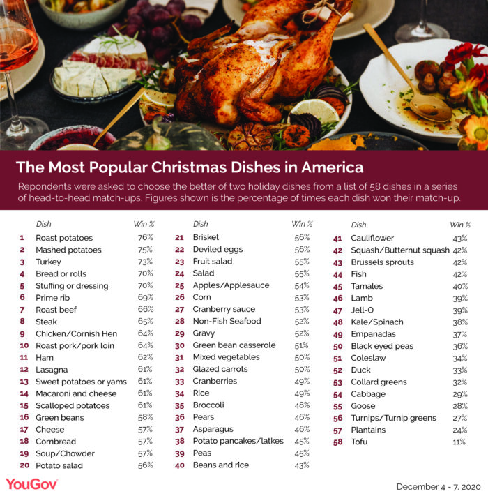 Ham came in 11th, and lasagna finished in 12th. Who knew that lasagna was a common Christmas dinner food?
