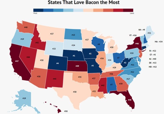 Thankfully, Wisconsin is still in the top ten states that love Bacon the most.