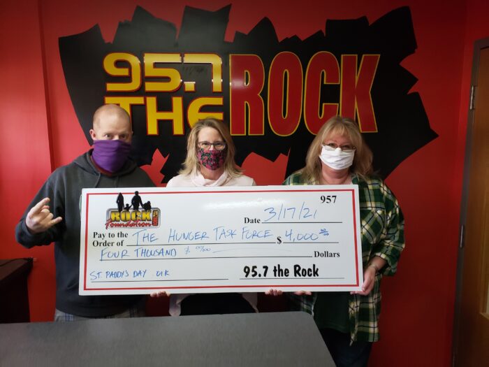 Late last week, Shelly from the Hunger Task Force stopped by the Rock studio to pick up a check for $4,000!!!