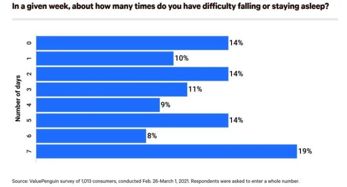 86% of Americans say they have trouble falling asleep or staying asleep at least once a week, and the top ten reasons for that, according to a recent survey: