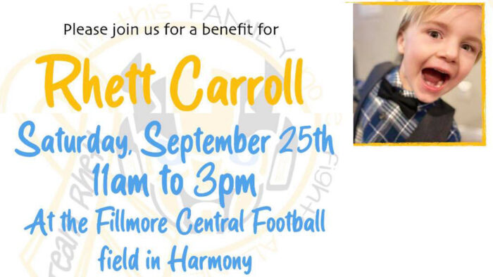 To help his family with their medical costs, there will be a benefit for Rhett on Saturday, September 25th at the Fillmore Central football field in Harmony, MN.