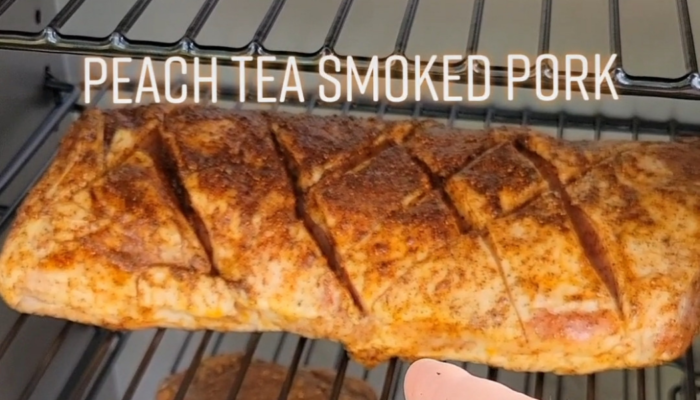 The short of it? You soak pork in peach tea before you send it to the smoker. A more detailed recipe is below in the video.