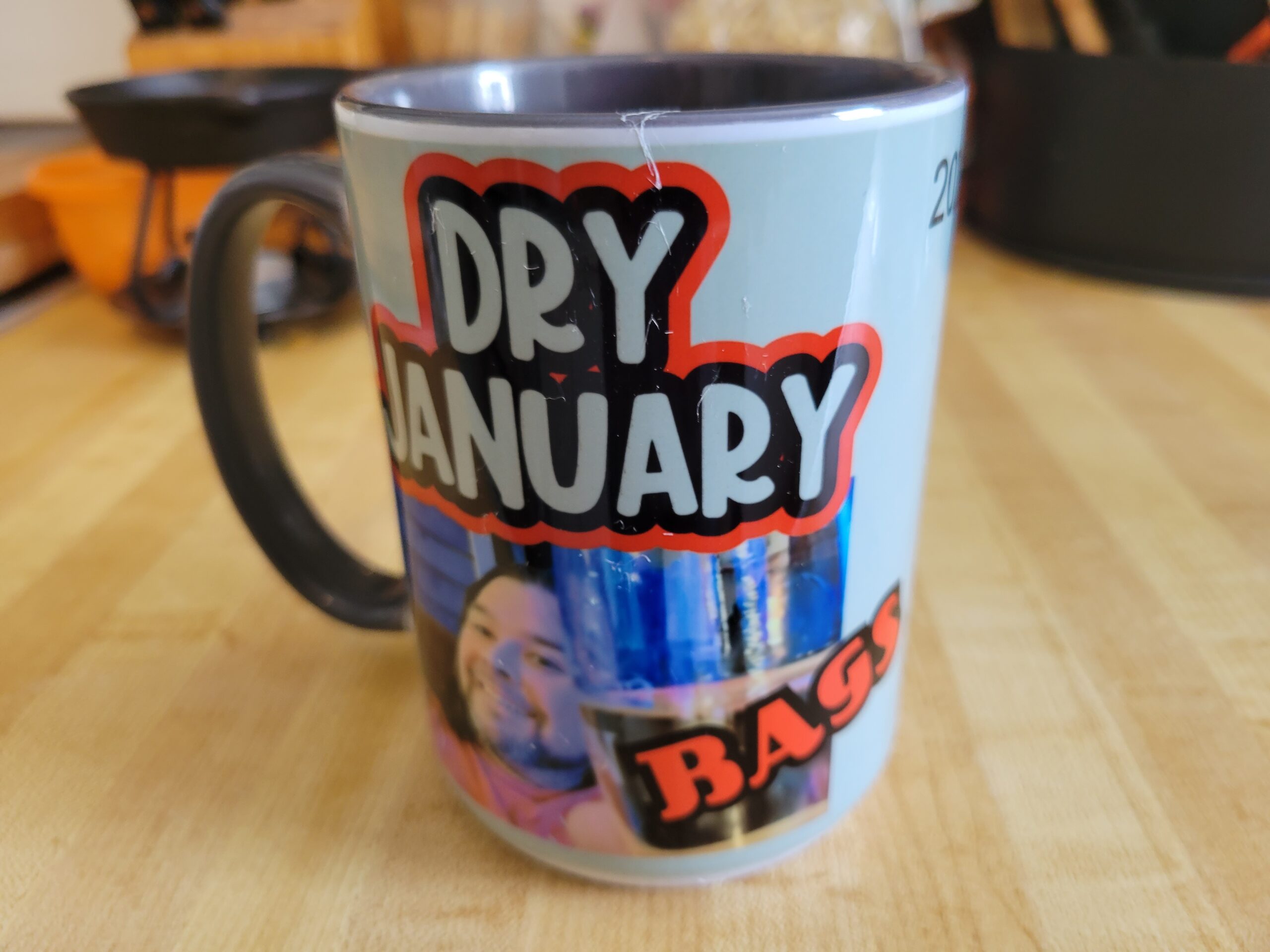 But today, I wanna highlight a very cool listener of ours, Tina, who made me this super cool coffee mug commemorating my successful completion of Dry January.