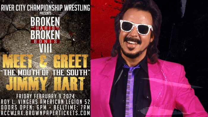 River City Championship Wrestling has brought in several wrestling legends over the years including “The Nature Boy” Ric Flair & Eric Bischoff, and at this Friday’s “Broken Harts & Broken Bones VIII” event, they’ve got the one & only, WWE Hall of Famer, Jimmy “The Mouth of the South” Hart!!!