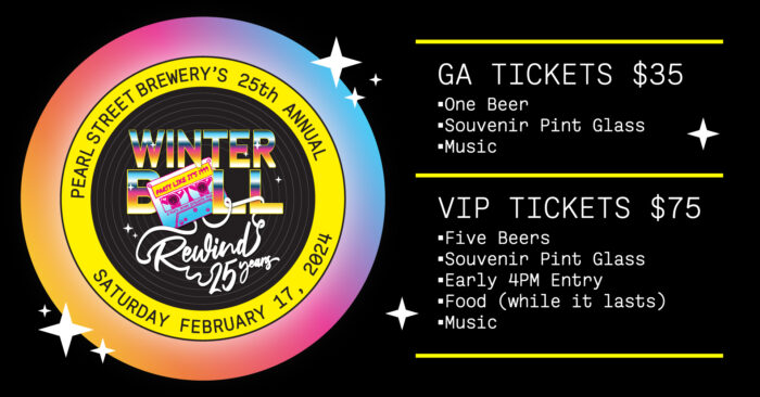 To celebrate 25 years of the Pearl St. Brewery & their great beers and impact on our community, make sure you come decked out in your best 90’s gear and party like it’s 1999!!!!!!