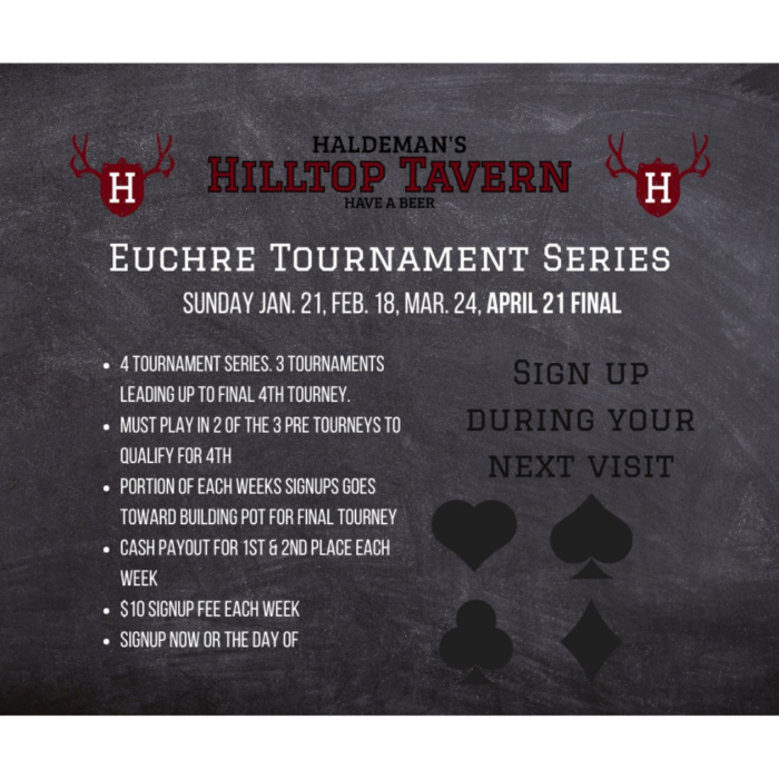 SUNDAY – EUCHRE TOURNAMENT @ HALDEMAN’S HILLTOP TAVERN
