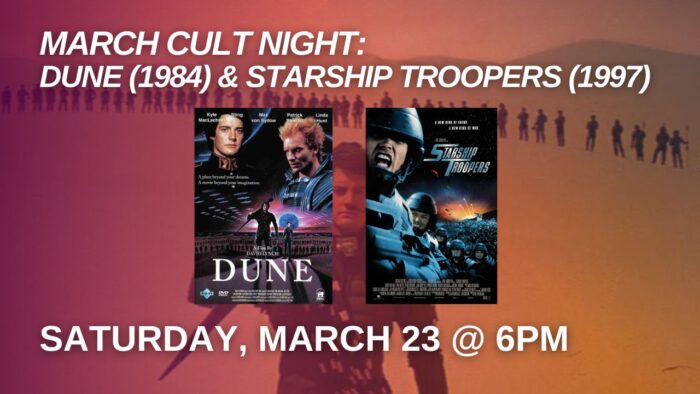 Of course you would! Doors for “Cult Movie Night” open at 6pm and as always, there will be exclusive, one-night-only video pre-rolls featuring music, trivia, & clips from both films.