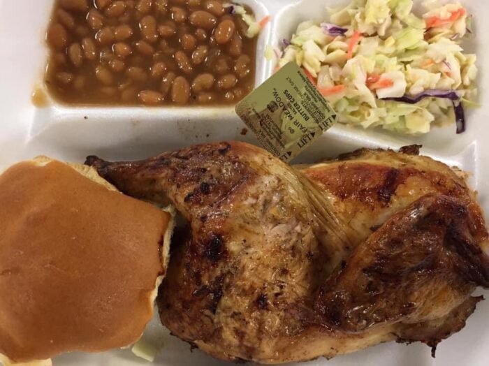 The Chicken-Q starts at 11am and goes until the chicken is gone. You can dine-in or take it with you.