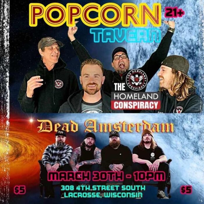 One thing’s for sure, it’s going to be LOUD this Saturday night at the Popcorn Tavern with Dead Amsterdam & the Homeland Conspiracy!