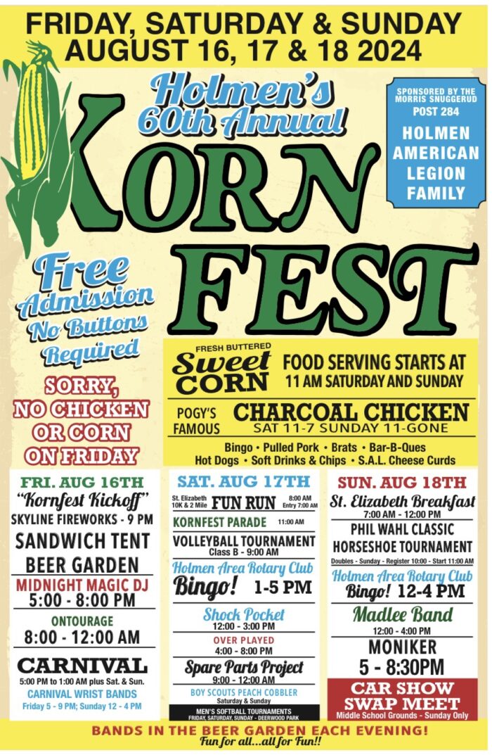 SUNDAY – HOLMEN’S 60TH ANNUAL KORNFEST
