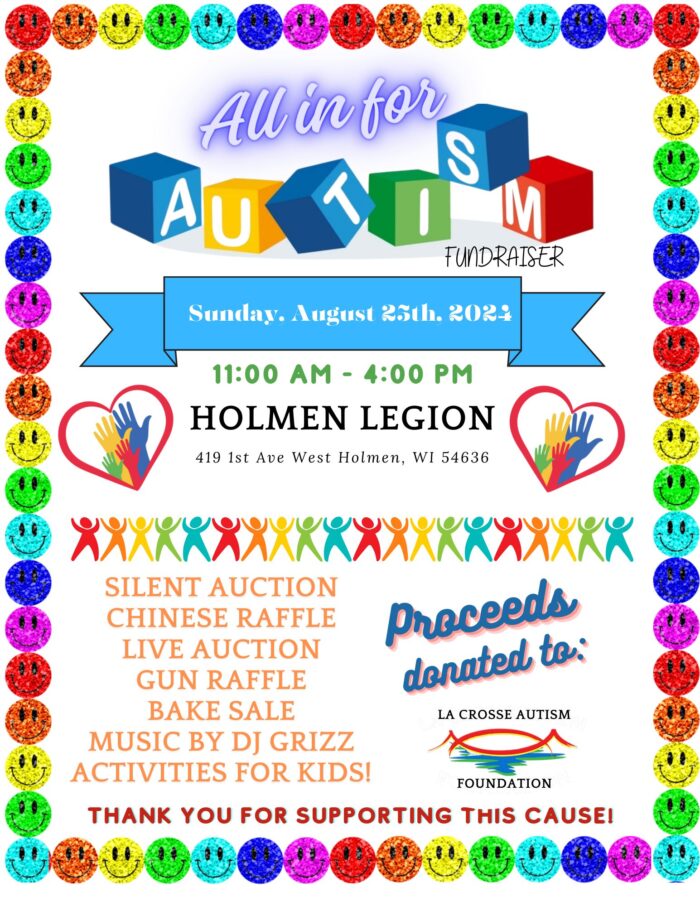 Get to the Holmen American Legion on #SundayFunday for the 7th Annual “All-In for Autism” fundraiser!