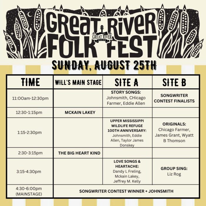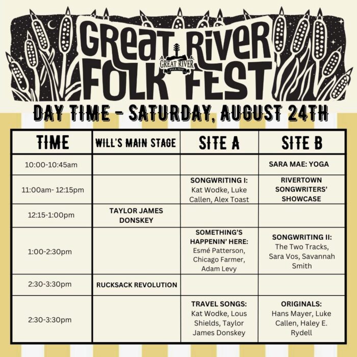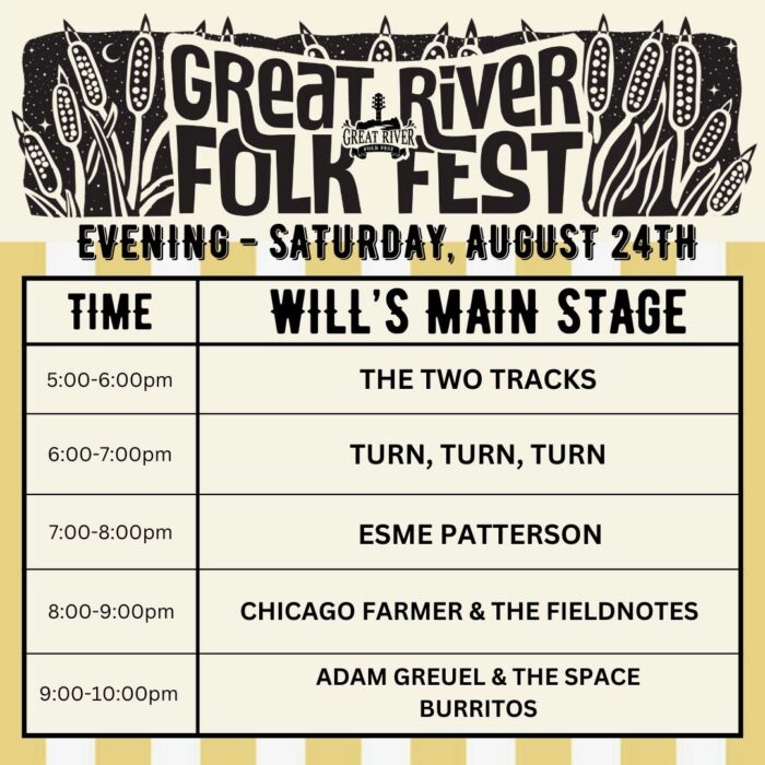 The Great River Folk Fest kicks off today at Riverside Park with three days of live tunes from some incredibly talented musicians, including Chicago Farmer & The Fieldnotes, Rucksack Revolution, Sarah Vos, & MANY more.