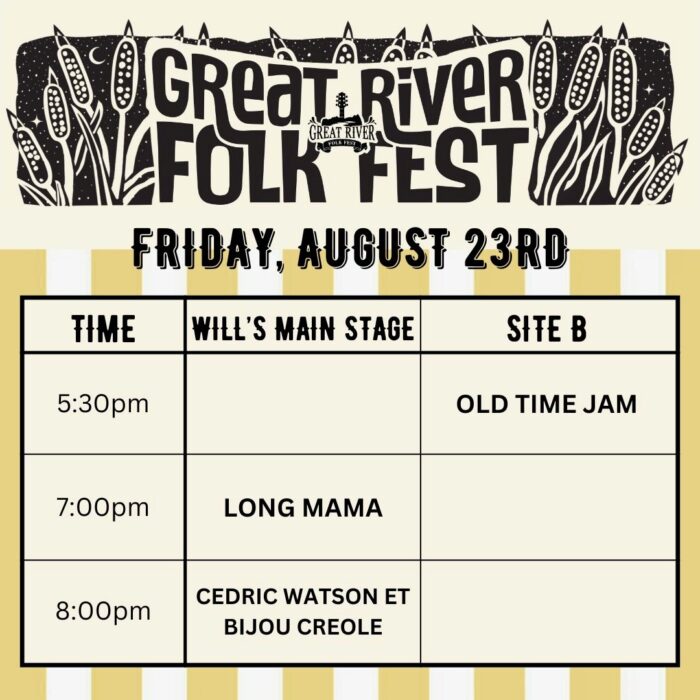 FRIDAY – GREAT RIVER FOLK FEST @ RIVERSIDE PARK