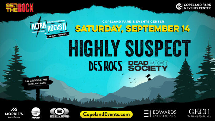 SATURDAY, 9/14 – ALTRA ROCKS – HIGHLY SUSPECT, DES ROCS & DEAD POET SOCIETY @ COPELAND PARK & EVENTS CENTER
