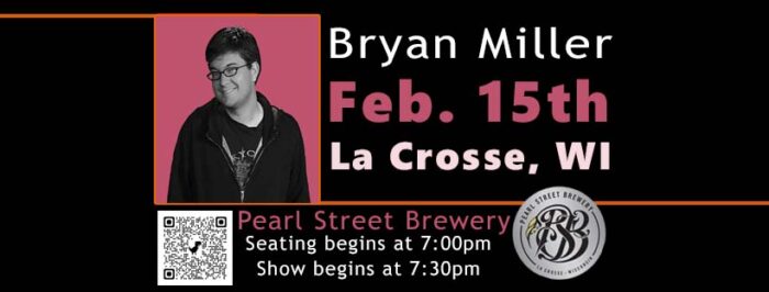 National touring comedian Bryan Miller will be on stage and seating is LIMITED.