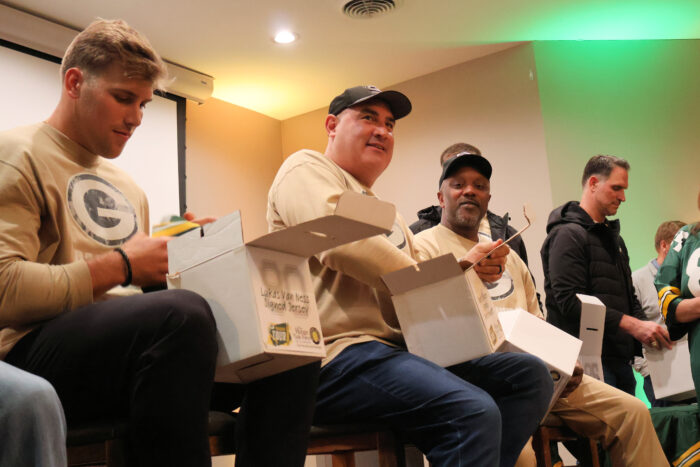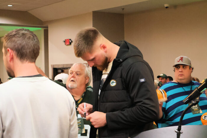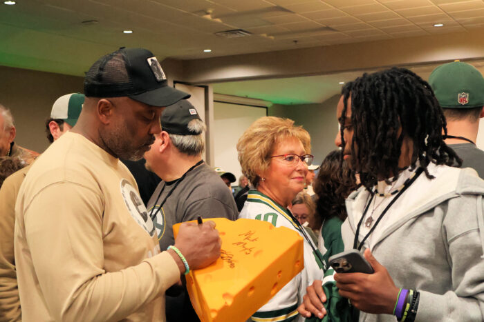 We got a chance to talk to some past and former players, and most importantly, raise money for charity. A helmet was signed by all the players in attendance that auctioned off for over $2000, and the Packers organization donated $25,000 to the Hunger Task Force. A truly awesome evening.