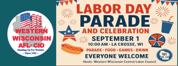 A Labor Day celebration presented by the Western Wisconsin Central Labor Council that starts at 10 am with a ten-block family-friendly parade beginning at the intersection of Gillette Street and Kane Street.