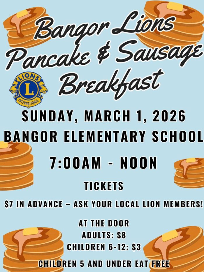 This Sunday morning, get to Bangor Elementary School for their pancake & sausage breakfast to benefit the Bangor Lions Club.