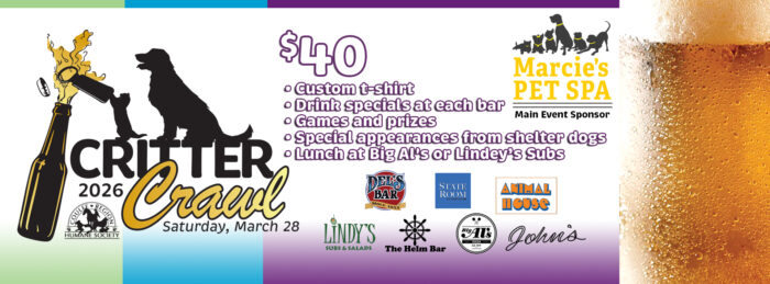 This Saturday, it’s the 3rd Annual Coulee Region Humane Society‘s Critter Crawl and for just $40, your donation will get you a custom t-shirt, drink specials at all the stops on the crawl. Along with games, prizes, raffles, lunch at Big Al’s or Lindy’s Subs & Salads…and you’ll be helping the Coulee Region Humane Society raise much-needed money!