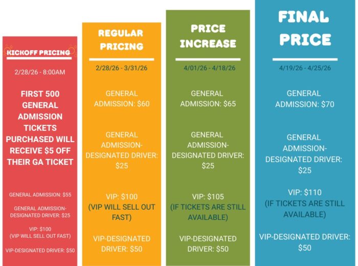 The Beverages & Bites Festival is on Saturday at the southside Oktoberfest grounds with VIP getting in at noon and General Admission tickets getting in at 2pm. This event is rain or shine, but the weather looks perfect with sun in the forecast and a high of 65° expected!
